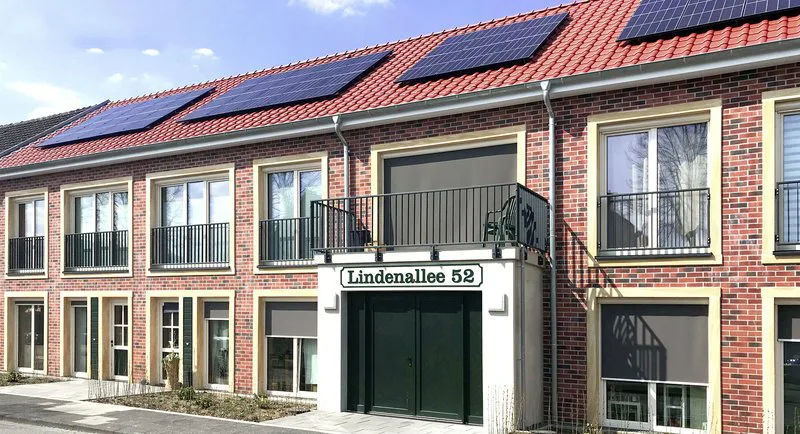 Dieses Mehrfamilienhaus mit neun öffentlich geförderten Wohnungen ist eines unserer Projekte, das mit der GdW-Rahmenvereinbarung für serielles und modulares Bauen realisiert wurde. Laut der GdW entstehen durch die Rahmenvereinbarung derzeit 1.225 Wohnungen und weitere 2.400 sind bereits in Planung. Um die Attraktivität unserer Bauweise weiter zu steigern, kooperiert Solid.Modulbau mit dem Berliner Mieterstromexperten Solarimo um noch mehr Energieeffzienz zu gewährleisten. Das Unternehmen plant, installiert und betreibt Solaranlagen deutschlandweit und auch auf den Dächern unserer Gebäude. Die Bewohner*innen werden mit grünem Strom – zu besonders günstigen Konditionen – vom eigenen Dach beliefert. Für die GEWO ist es das erste Neubauprojekt mit einem Mieterstrommodell.