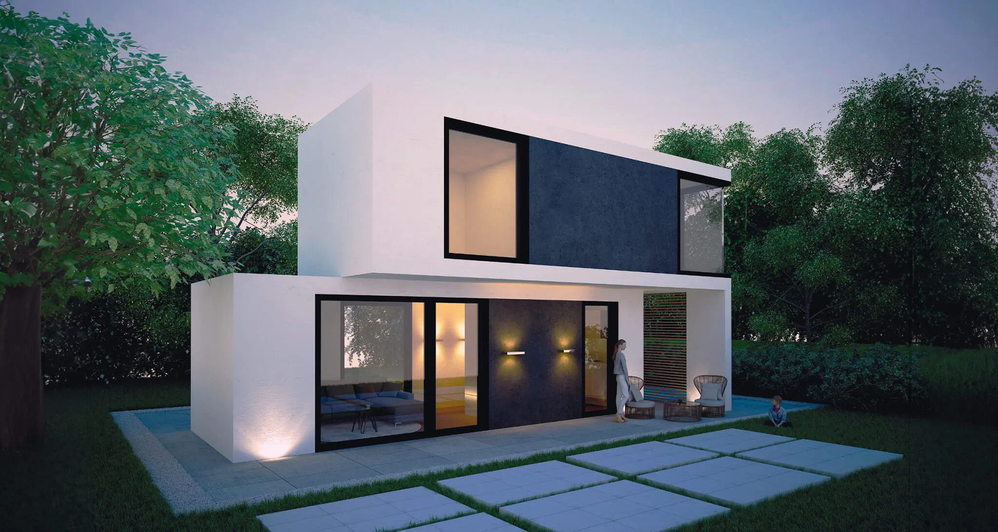Im Erdgeschoss funktional miteinander verbunden, zeigen sich das bestehende Gebäude und der neu angrenzende Warte- und Präsentationsraum mit einen separatem Kunden WC aus einem Guss.